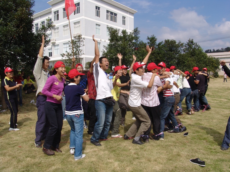 10月18日,,,,,,,,公司工会组织了一次以“团结、拼搏、进取、立异”为主题的大型意见意义拓展运动会。。。。。。。公司总部厂区近180余人加入了本次运动。。。。。。。 运动项目包括名堂跳绳,,,,,,,,轮胎接力,,,,,,,,齐步螃蟹走,,,,,,,,珠行万里,,,,,,,,60米障碍接力赛,,,,,,,,拔河,,,,,,,,背靠背、心连心以及连体足球对抗赛。。。。。。。这些运动集意见意义性与拓展意义于一体,,,,,,,,使员工在运动中既松开心情,,,,,,,,又增强团队声誉感和团队凝聚力。。。。。。。