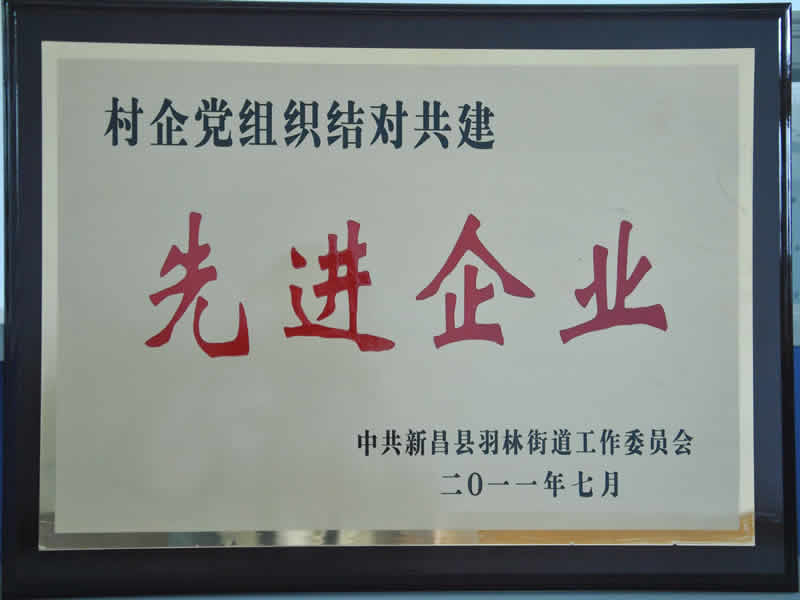 6月28日,,,,,,,,建党90周年运动前夕,,,,,,,,新昌县羽林街道组织开展评优表扬运动,,,,,,,,会上对2010年在推进全街道刷新、生长、稳固中做出效果的10个先进党组织、12家先进村企党建共建企业,,,,,,,,100名优异共产党员予以表扬。。。。。。。。公司荣膺先进村企党建共建企业,,,,,,,,清静生产管理部黄玉峰和研发中心陈见阳被评为优异共产党员。。。。。。。。