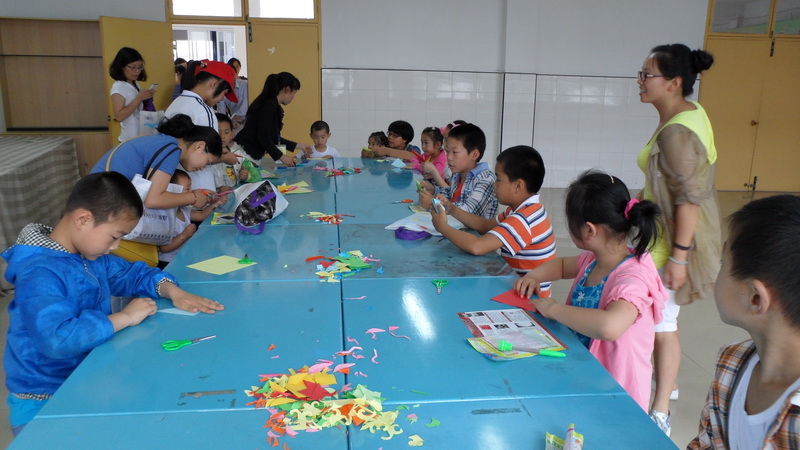 虽然天公不作美,,,,,,,,下了一整天的大雨,,,,,,,,但丝毫没有阻挡小朋侪们加入运动的热情,,,,,,,,由于加入职员较多,,,,,,,,许多运动室前排起了长长的步队龙。。。。。意见意义剪纸、七彩风车、元祖体验、创意软陶等需要小朋侪们自己下手创作的运动项目不但充分验展了他们的想象力,,,,,,,,并且也让他们从中体会到了下手的兴趣。。。。。在亲亲大脚板、心有灵犀、袋鼠赛跑等亲子游戏中,,,,,,,,展现的则是一派配合默契、你追我赶、其喜洋洋的热闹情形。。。。。天文科普、禁毒教育体验、科技探梦等运动让小朋侪们在加入运动的同时又增添了科普和清静知识。。。。。