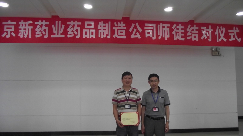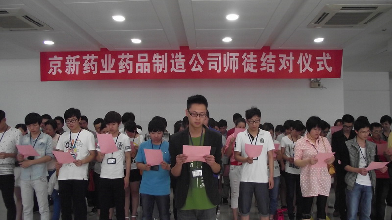 结对仪式上,,,,,,,药品制造公司总司理陈绍碧向被聘为车间各个岗位的师傅揭晓聘用证书,,,,,,,并向通过审核的师傅授予津贴奖。。。。。。。。新员们逐一上台宣读誓言,,,,,,,表达了自己虚心讨教、永求上进的刻意。。。。。。。。