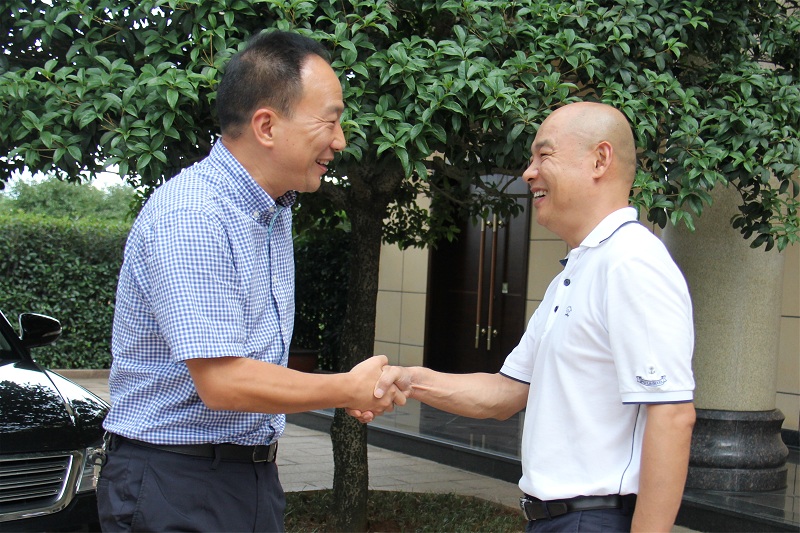 8月8日下昼,,,,,,新昌县副县长裘武宏一行莅临公司视察事情,,,,,,公司董事长吕钢、总司理王能能接待了裘副县长一行。。。。。。。。