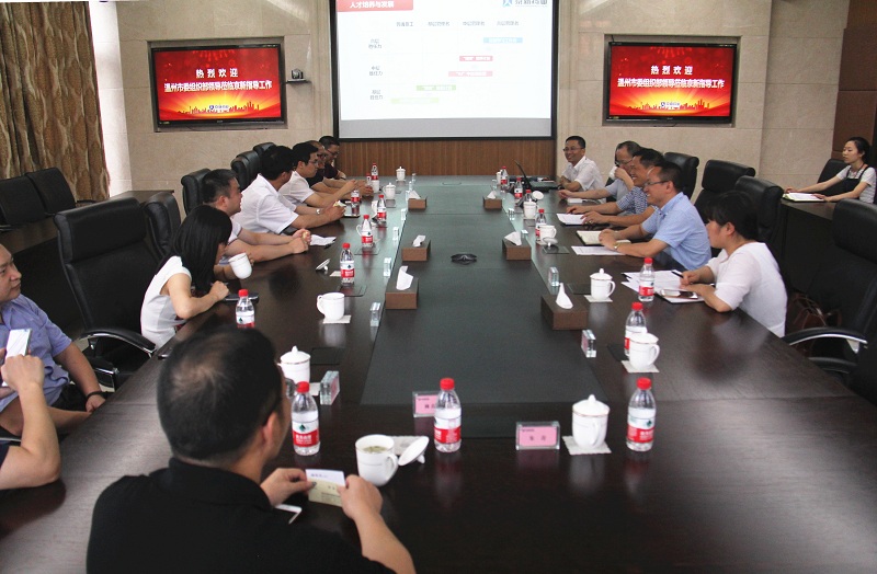 7月10日,,,,,,温州市委组织部向导一行莅临公司调研指导事情,,,,,,绍兴市委组织部、新昌县委组织部有关向导陪同,,,,,,公司副总司理周林、人力资源总监周晓峰等公司向导热情接待了温州市委组织部向导一行。。。。。。