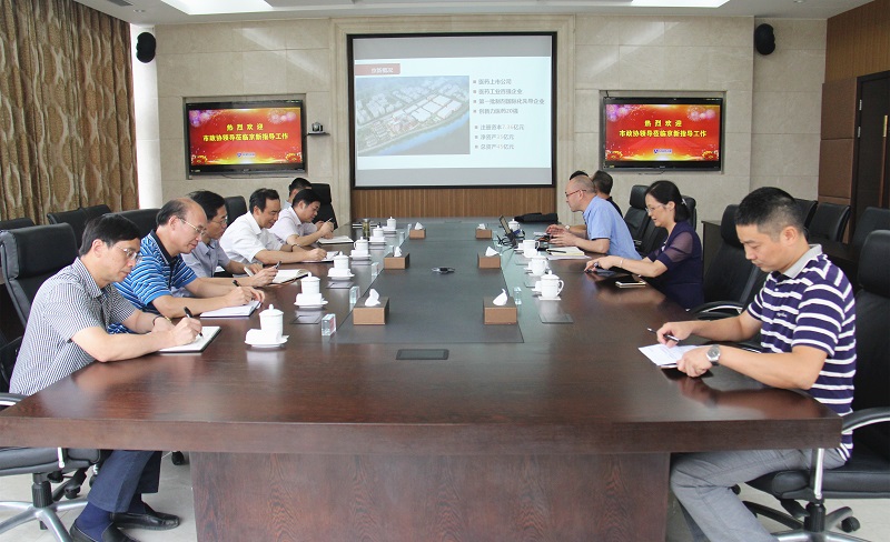 8月31日上午,,,,,,,市政协副主席陈国阳向导市政协社法委、市发改委、市经信委等向导莅临公司调研指导事情。。。。。公司总司理王能能热情接待了陈副主席一行。。。。。