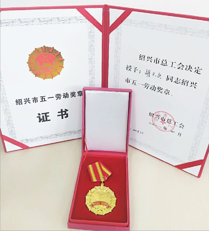 公司副总司理胡天庆荣获“绍兴市五一劳动奖章”
