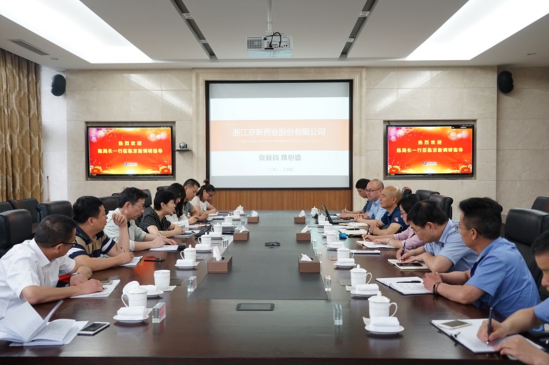 5月31日,,,,,,省食物药品羁系局副局长陈智慧一行在绍兴市市场羁系局局长王永明、新昌县副县长胡玲萍、县市场羁系局局长赵新建等向导的陪同下莅临公司调研指导事情。。。。。。。。公司董事长吕钢、总司理王能能、研究院院长侯建等公司向导热情接待。。。。。。。。