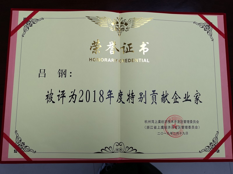 2月19日,,,,,杭州湾上虞经济手艺开发区召开“聚焦项目、大抓落实”暨“三服务”推进大会。。。。。。。。公司董事长吕钢荣获上虞经济手艺开发区"2018年度特殊孝顺企业家”称呼。。。。。。。。